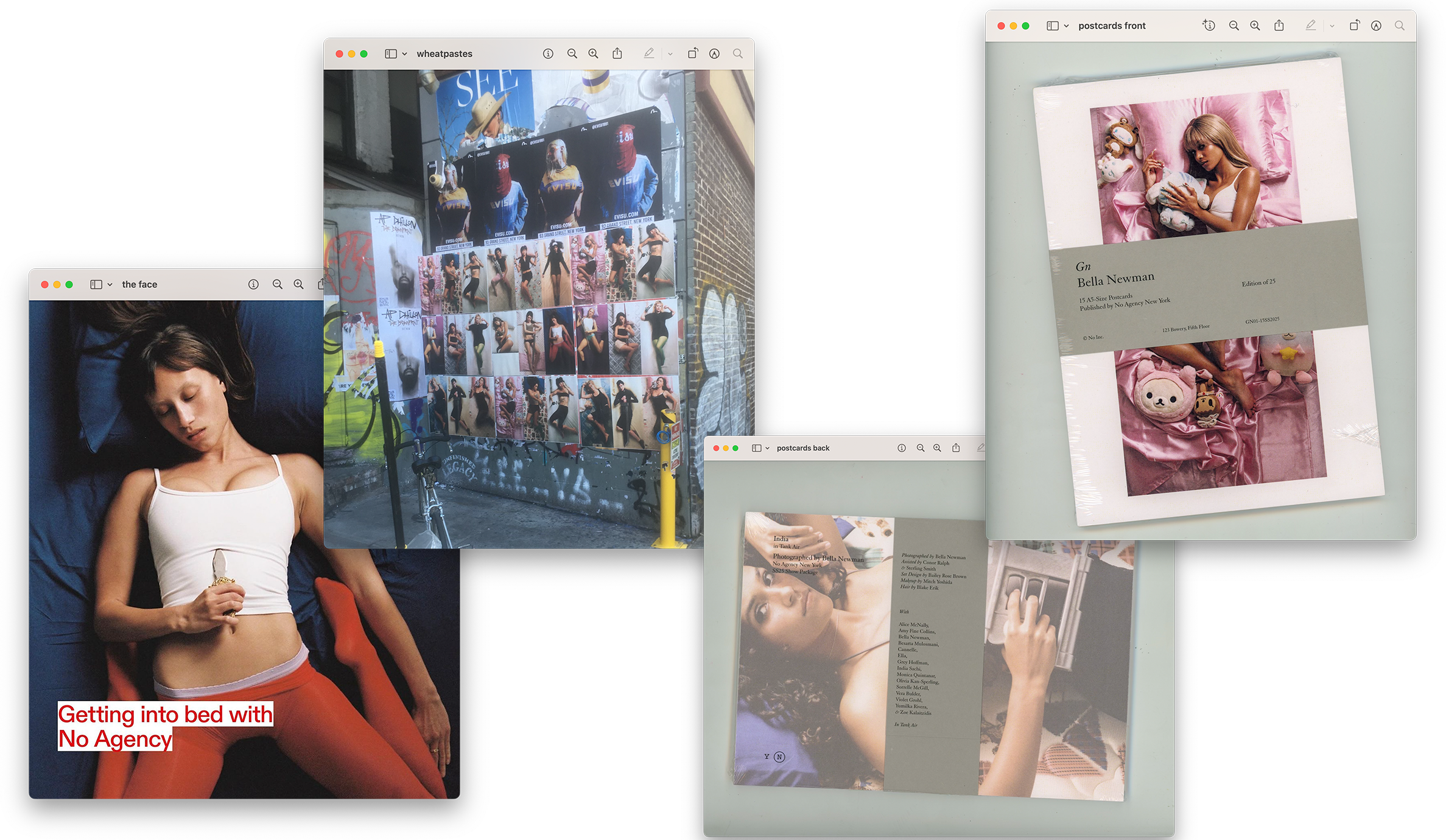Collaborating with photographer Bella Newman, No Agency New York’s SS25 Show Package featured No Agency talent in a series of dreamlike overhead portraits, wearing Tank Air and clutching weapons, pets, babies, and more. Limited edition sets of 15 A5 postcards featuring images from the project were released exclusively at Dashwood Books. READ MORE BUY
